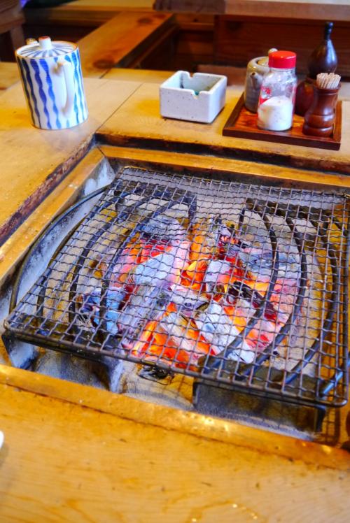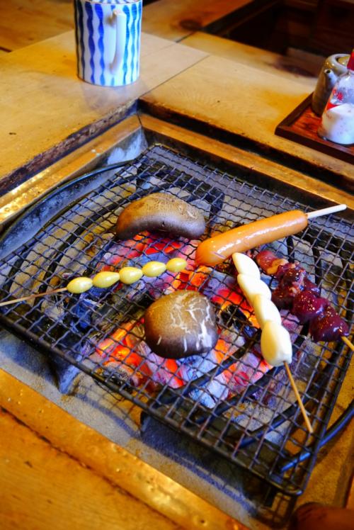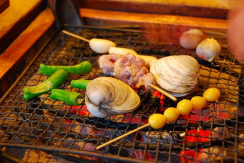 ランチで定食が食べられますが(単品も)、おススメはやはり夜!各テーブルごとに炭をセットしてくれるところからワクワク感が始まりますが、自分で好きな串焼きをざるに入れて取りに行くのがまた楽しい。目の前で焼けていくのを見るのも楽しい♪人気店なのですぐに満席になります。私達夫婦はいつも開店時刻前からお店の前でおとなしく(まだかなーとアピールしつつ)待っています(笑)