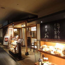 江戸小路の奥の方にあり、手前側の賑やかさと比べると落ち着いた雰囲気のエリアの中に位置しています。小さなお店ですが高級感が感じられました。おでんやお茶漬けを頂きましたが出汁が美味しく、搭乗前の胃にもやさしいお味でした。