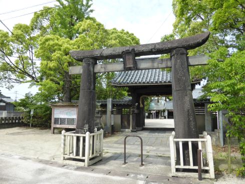 神社の鳥居のすぐ左手に参拝客用の駐車場はありました。鳥居の作りも佐賀に見られる石造りのものです。