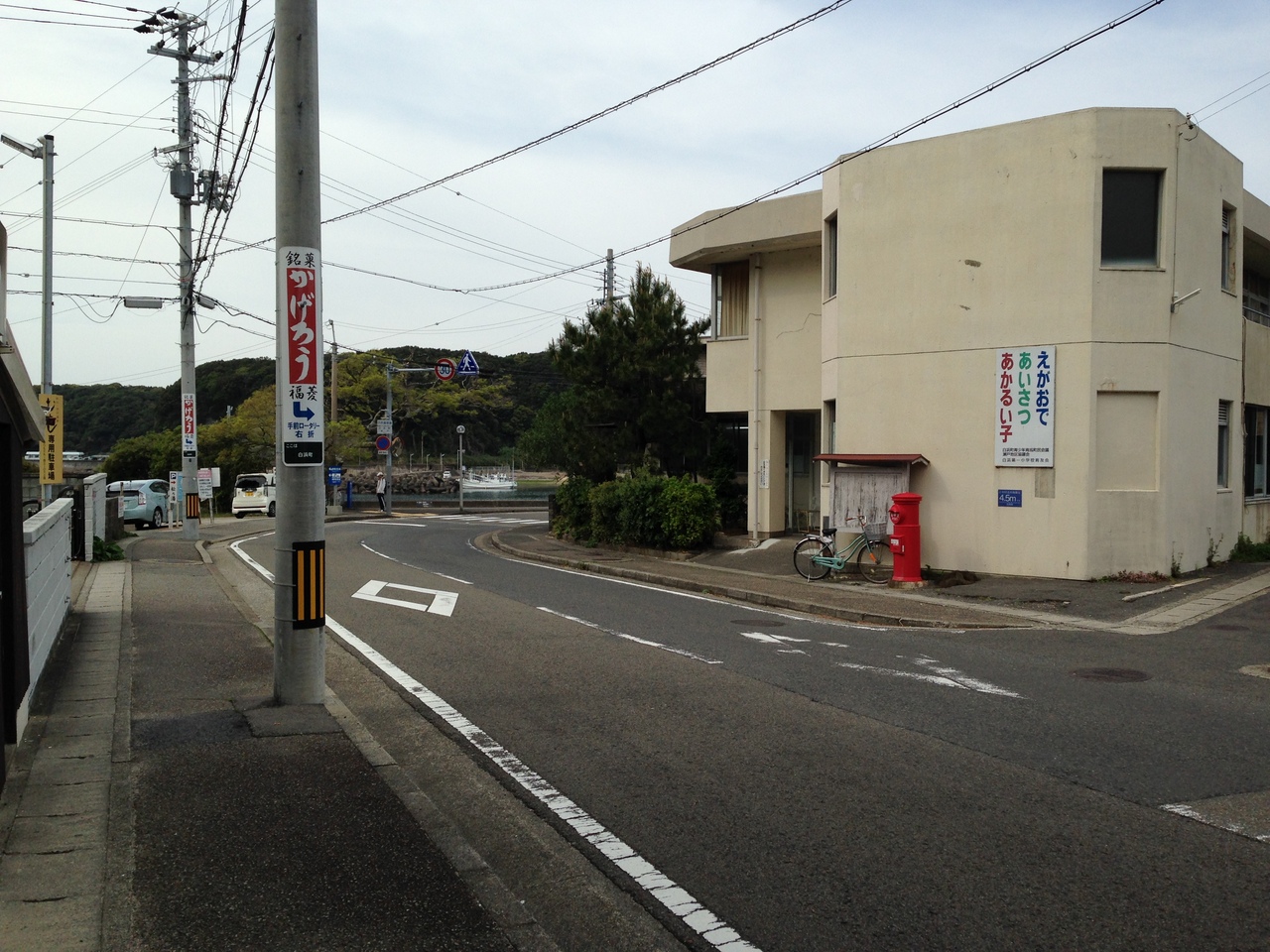 白浜バスセンターから5分程歩くと、白良浜の松林を越え、外湯の松の湯の前に出る。ここで海岸が広がり円月島を見ることができる。