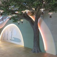 奥には童話の森があり、作品に登場する植物が観察できる遊歩道が巡り、せせらぎが流れています