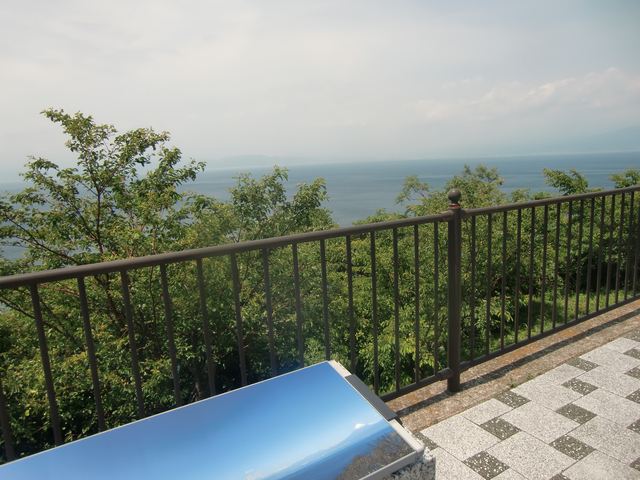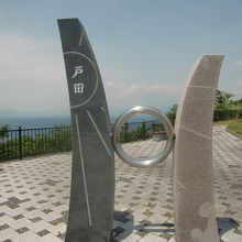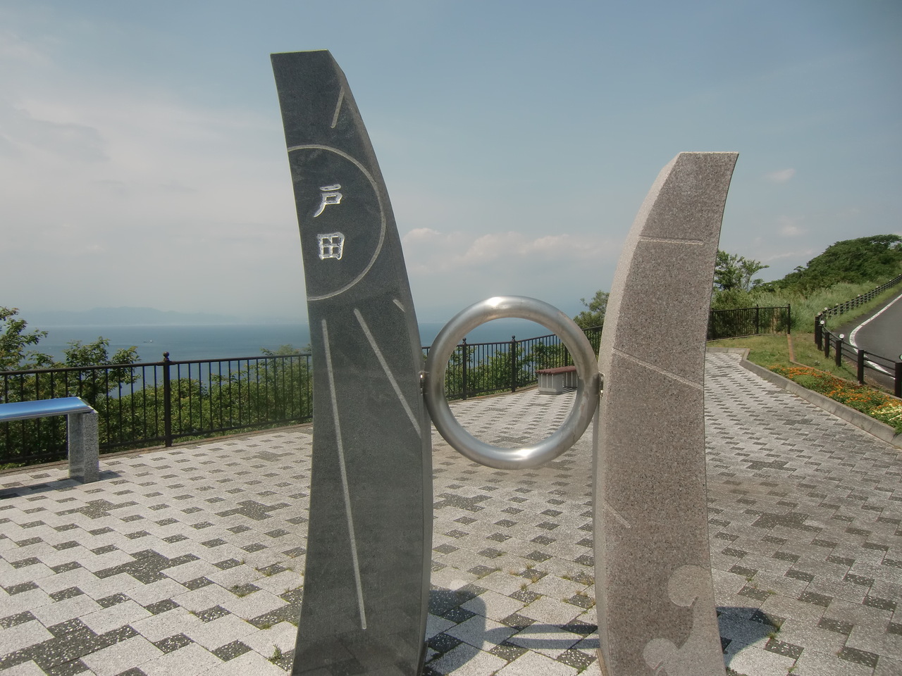 高台にあり、海を望む絶景スポットです。リングの中から富士山が見えるようになっていますが、訪問した日は天気は良かったものの富士山方向に雲が出てしまい、富士山を見ることはできませんでした。ただ、海は真っ青で、とてもキレイでした。
