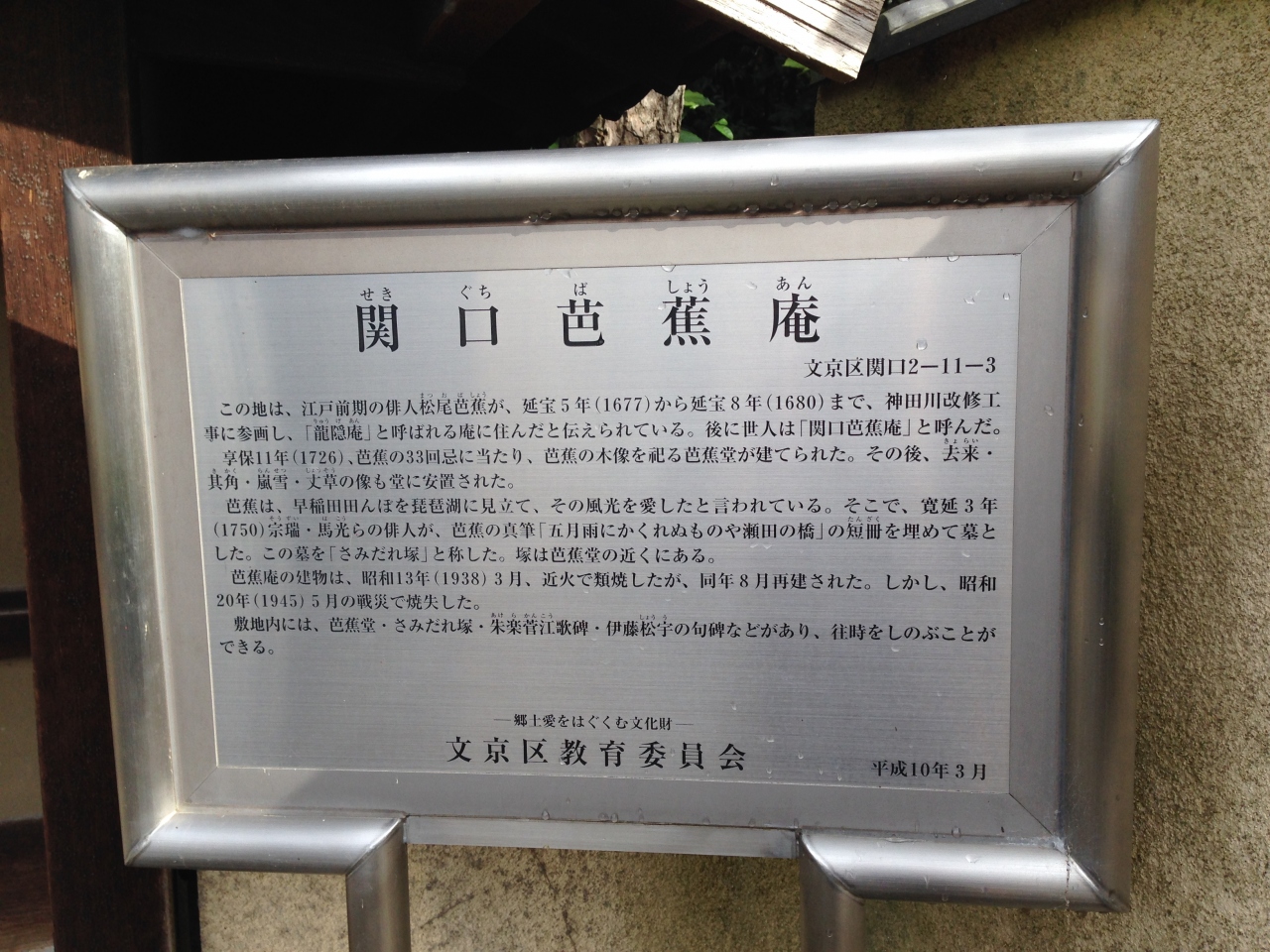 永青文庫に行く胸突坂の手前に芭蕉庵がありました。