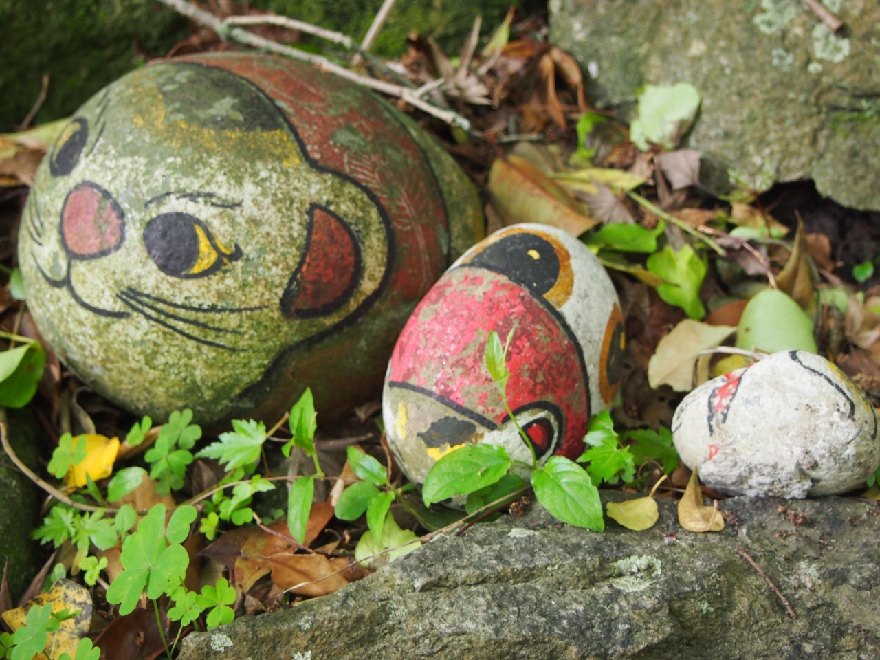 細い道にたくさんの猫石があって、どれも個性的でかわいい。