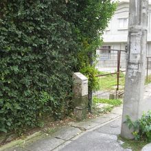寒川通り(県道50号線)にある安国寺の西側、道路沿いに「御客屋跡」の石標が建っています。