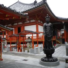 空也上人が自ら刻んだ十一面観音菩薩像を車に積んで市中を回って歩いたと言われている像を模して造られた銅像が本堂のすぐ前に設置されている。