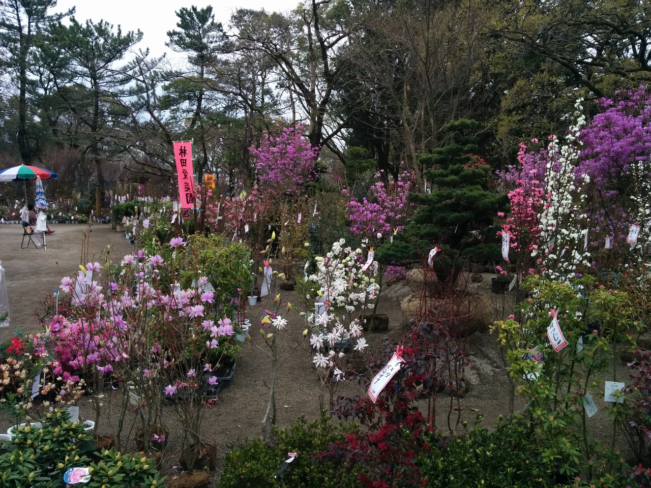 すると、公園内で植木市が開催され、多くの植木職人さん達が立派に育てた花や植木がたくさん展示販売されていました。