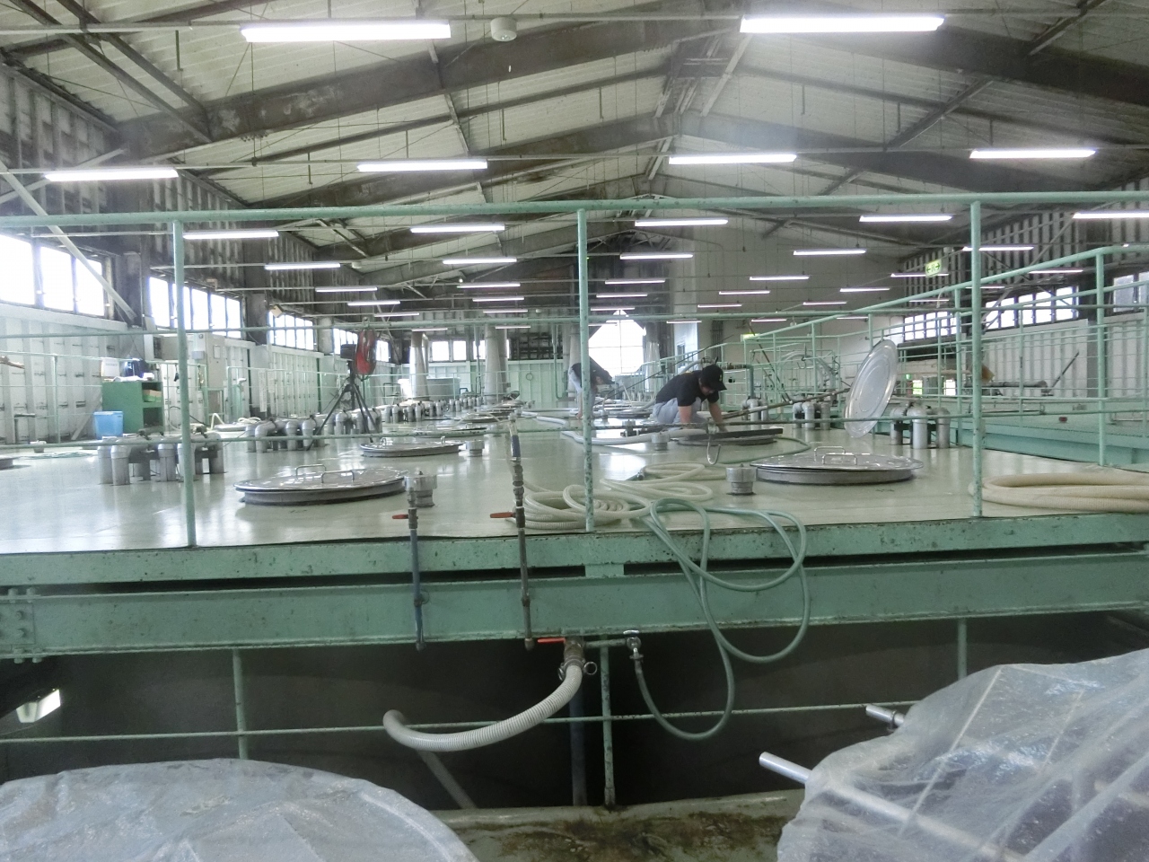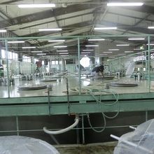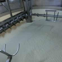靴と頭にゴミ防止のカバーをして製造工程から貯蔵庫、