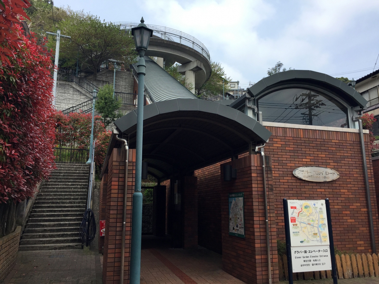 日本で初めて公道にエレベーターが設置されたのが、グラバースカイロードです。設置は2002年なので、15年前までは、地元のみなさんも、グラバー園に向かう観光客も約300段くらいの階段を上っていたことになります。とってもありがたい存在です。