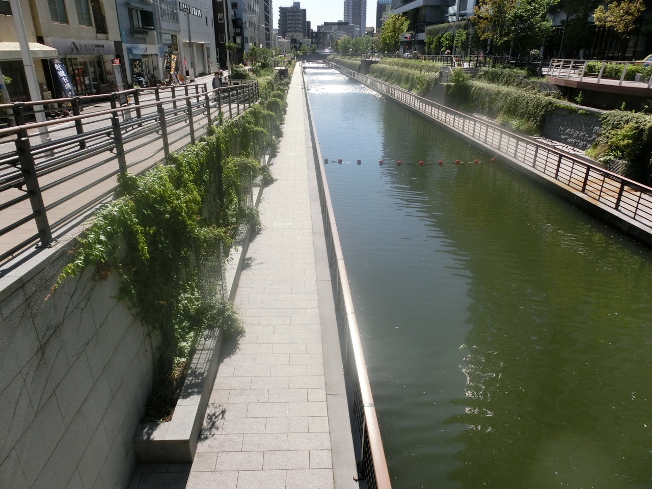 東武橋から京成橋まで約45?の護岸が親水テラスとなっている。