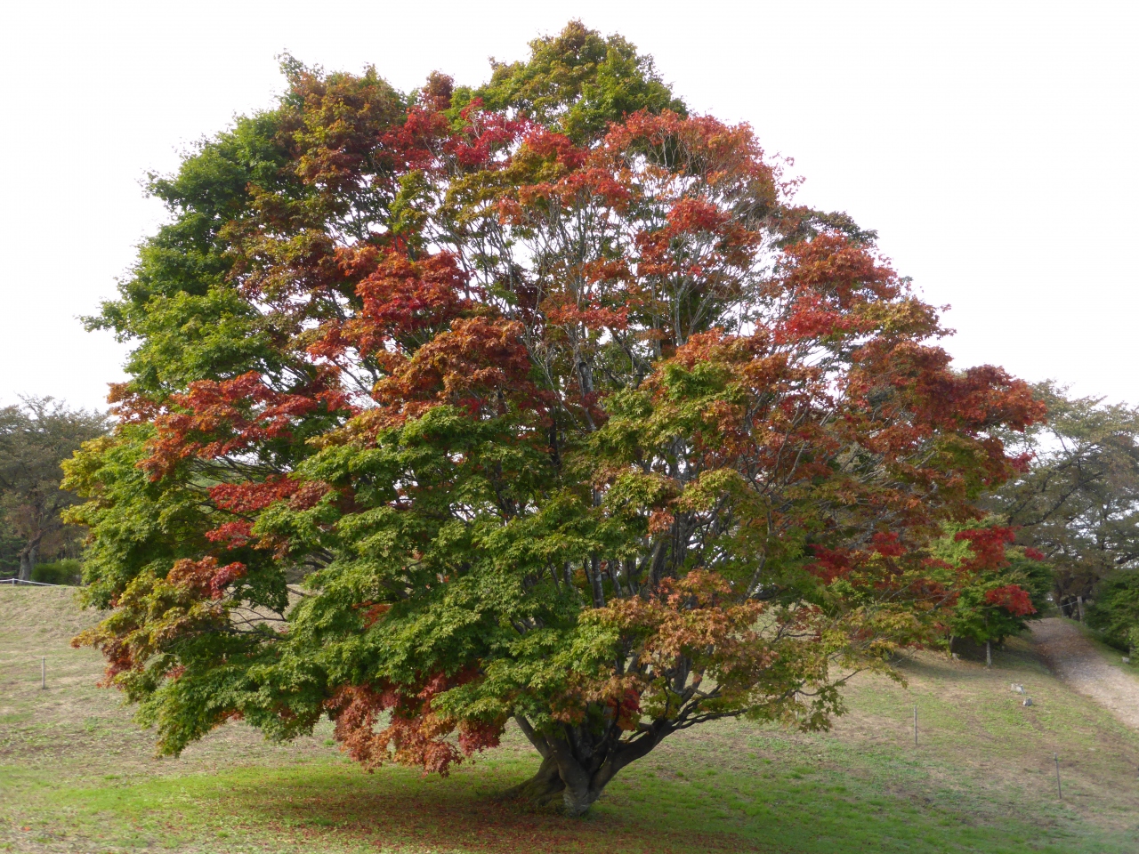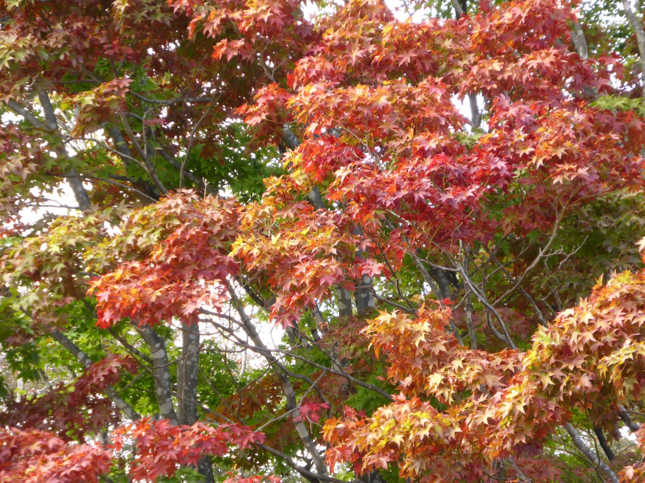 中房温泉宿泊後、安曇野観光の際レンタカーで訪れました。穂高駅や安曇野からは少し離れています。10月上旬でしたので、まださほど紅葉していないと思っていましたが、十分きれいで、色づき始めの色の変化を見る事ができました。もしこのカエデの紅葉目当ての方は、池田町の観光協会がホームページでかなりまめに写真をアップしてくれているので、そちらをチェックして検討したほうがいいと思います。