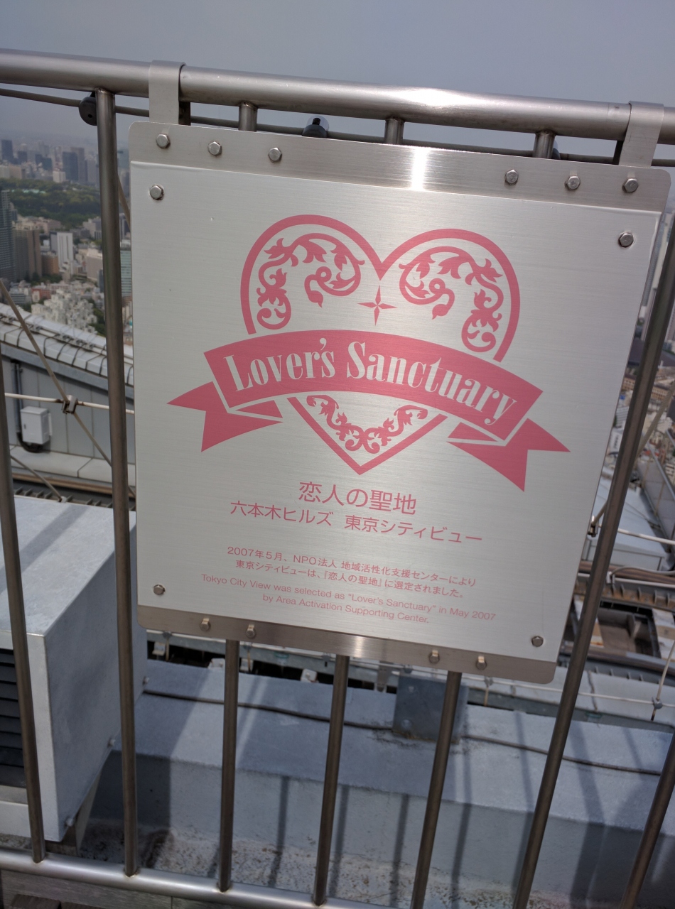 ヒルズのスカイデッキには、恋人たちの聖地の看板がありました。