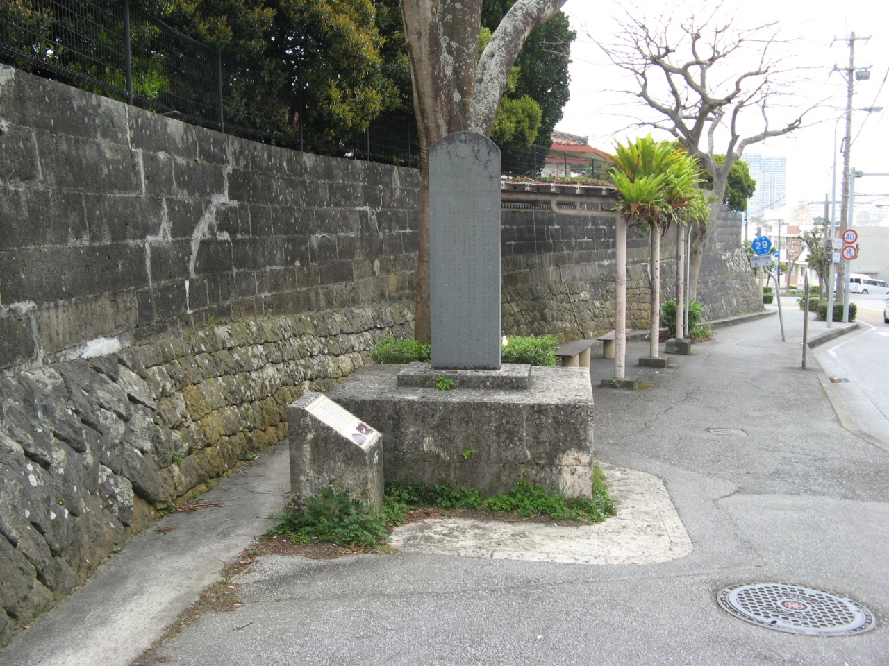「官松嶺跡」は、県道29号線「沖縄都ホテル前」バス停近くにあり、「官松嶺記」の碑と説明用の石標が建っています。