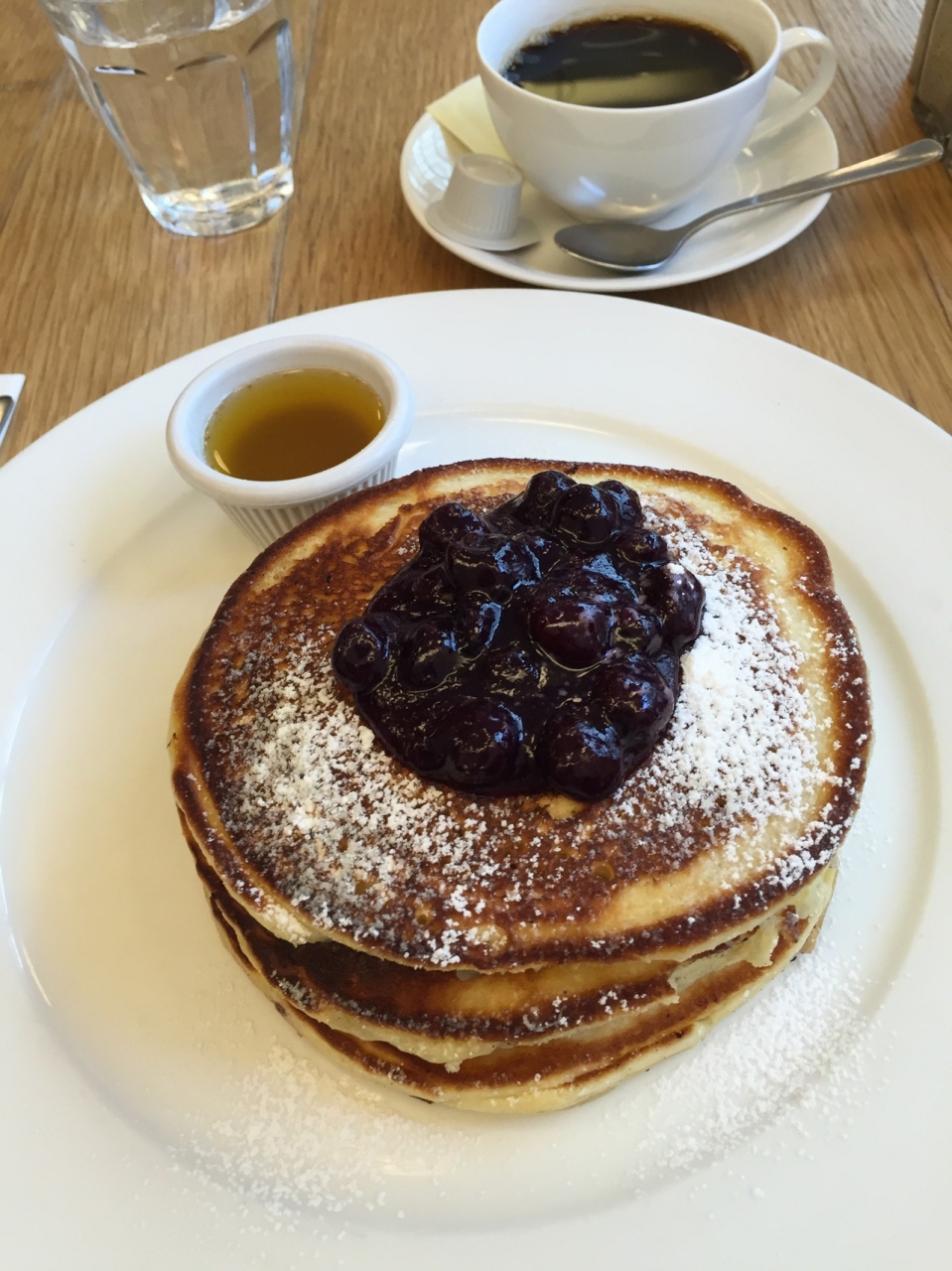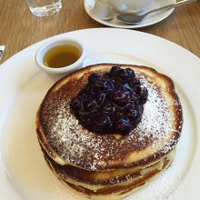 今まで色々パンケーキを食べてきました。特に海外で食べる事が多いので 量があり トッピングも盛りだくさんなパンケーキからシンプルな昔ながらのパンケーキなど様々のなかで、こちらはNYって言葉に騙されてしまいました。ブルーベリーパンケーキですが、ブルーベリーも少なく、シロップも こちらはバターシロップで、カロリーを考えるとかける気になれませんでした。何と言っても値段も高いしフワフワと比喩されていますが、普通です。やっぱり バター無しのシロップ欲しい。。