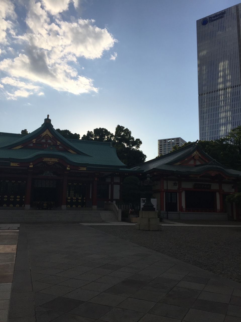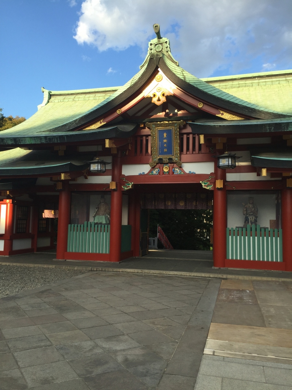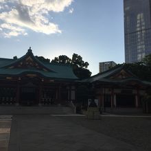 車で参拝する時は上の社務所の前まで行けます。無料ですので便利です。ビルの狭間で桜などの木に囲まれて風も抜けるので とても気持ちよかったです。なだ万の喫茶もありました。日枝神社が猿田彦神社だった事を初めて知りました