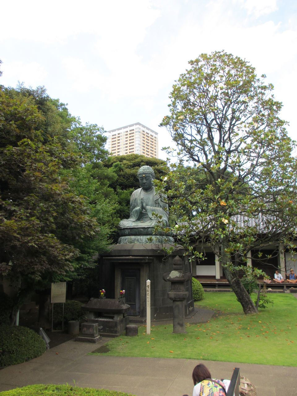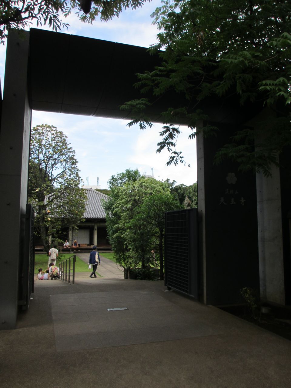 日暮里の谷中霊園の中にあるお寺です。門はちょっと近代的な感じでまるで美術館の入口のよう。手すりもステンレスの板製でちょっとお寺の雰囲気ではないです。