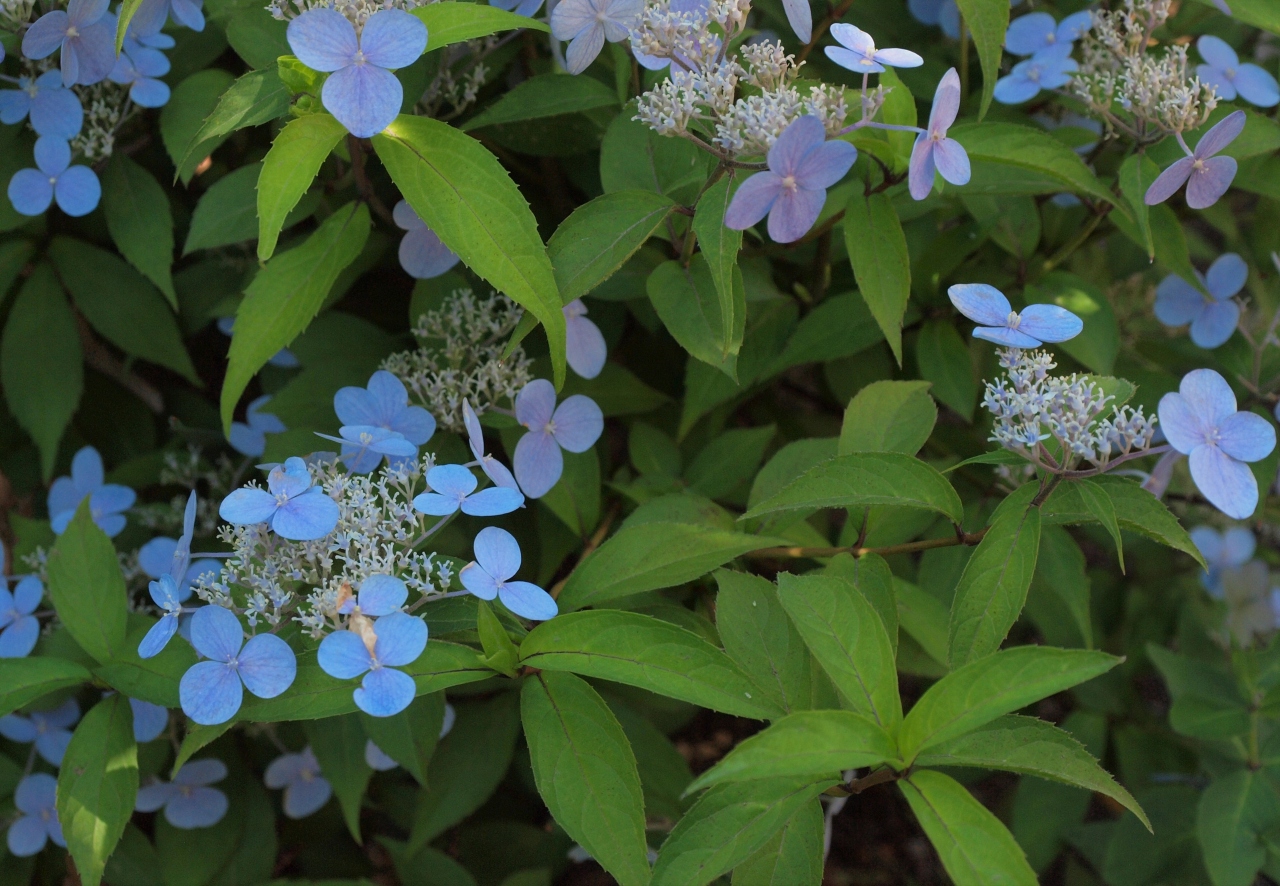 そして青い山あじさい(伊予の雫または天城甘茶かと思われますが)もそこここに咲いていました。
