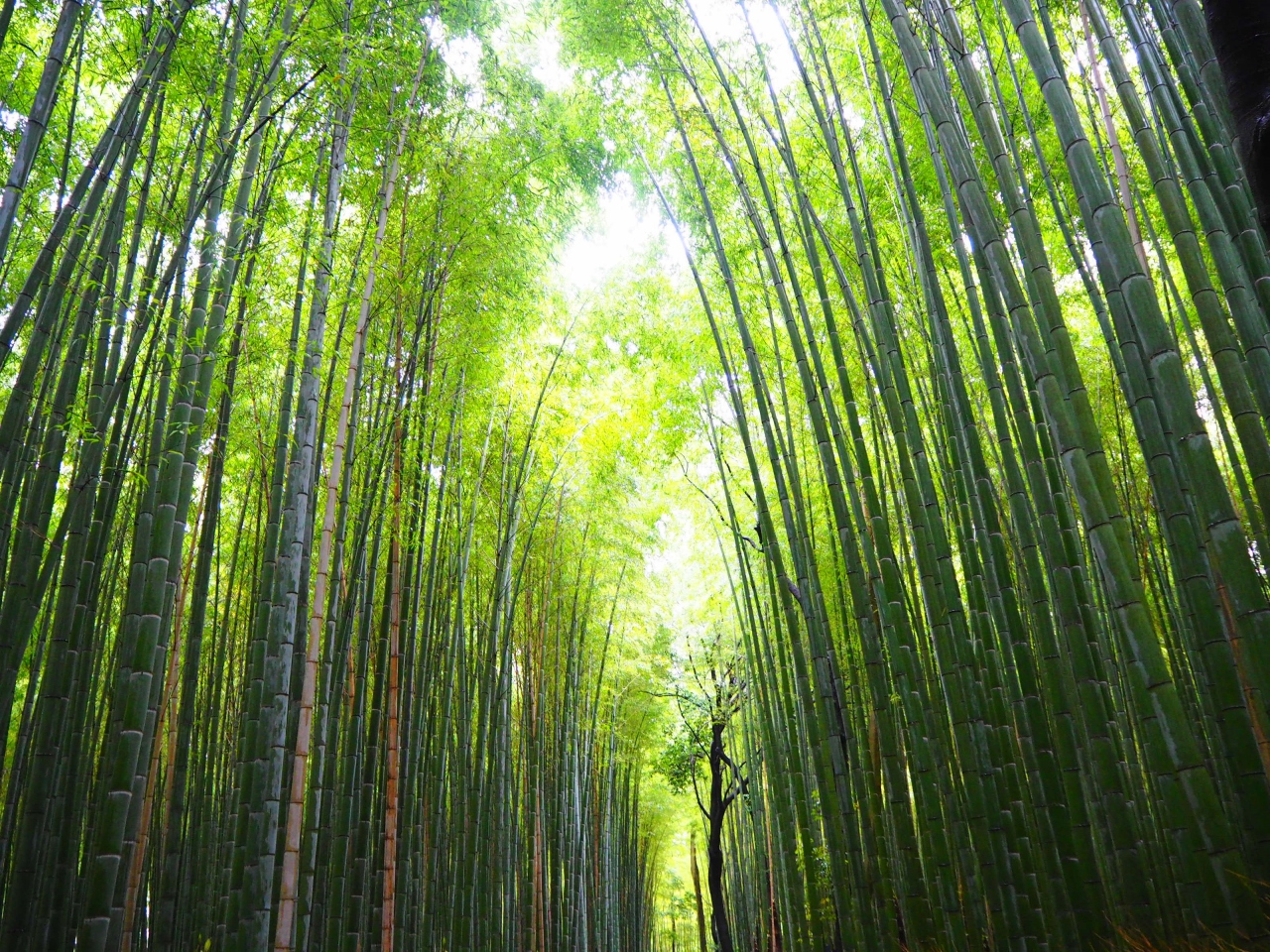 青々とした竹は空を覆うほど高く、晴れた日は竹林からもれる日差しを浴びて、 凛とした空気の中、気持ちよく散策できます。
