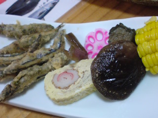 食べたのは、お通し、刺身盛(カツオ、トビウオ、水イカ、ウニ)、トビウオつけあげ、エビすり身揚げ、きびなご天、水イカ下足焼、魚雑炊。