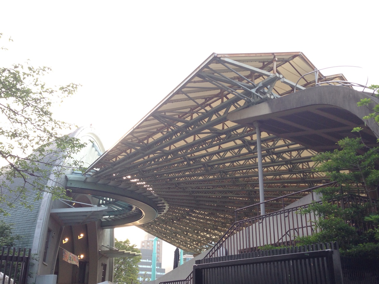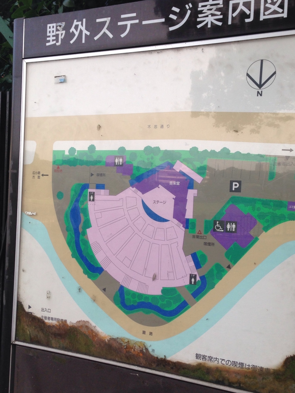 半分くらいしか屋根がないので 音声は遠くまで響き、客席も外からみえたりします。開放感ありですね。