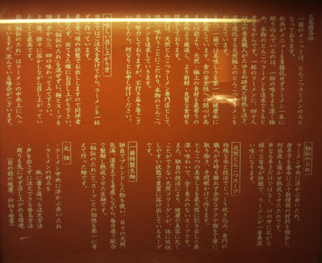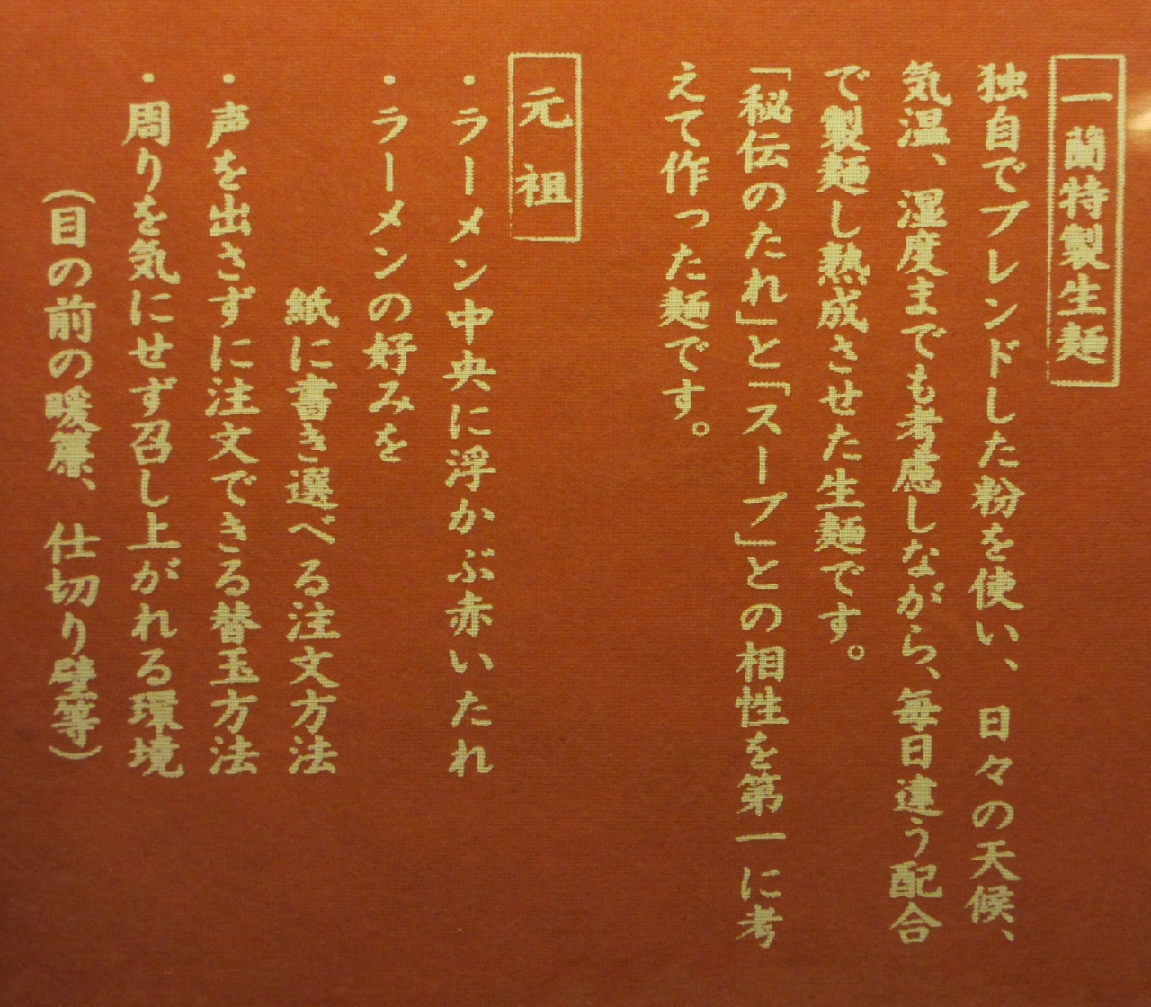 テーブルの上にある注文票で、麺の硬さや秘伝のタレの濃さなどを選ぶように