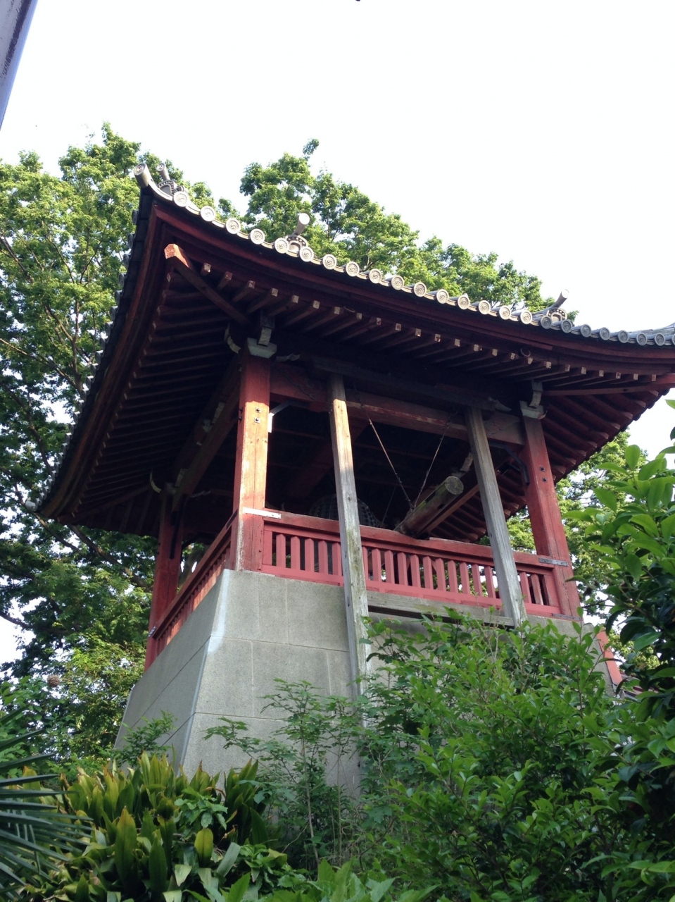 小高い山の上にあるので見上げる様な形で近くでは見られませんが、確かに釣鐘を確認できます。芭蕉の俳句にも詠まれた鐘だそうで、元の場所から引越しをし 今ここに。