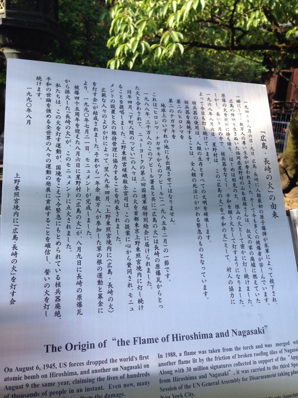 実際の原爆での炎を 灯しつづけたものだそうです。そんな説明の書かれたものを読んでいると、あってはならない事への悔しさと、今ある平和のありがたさをつくづく感じます。