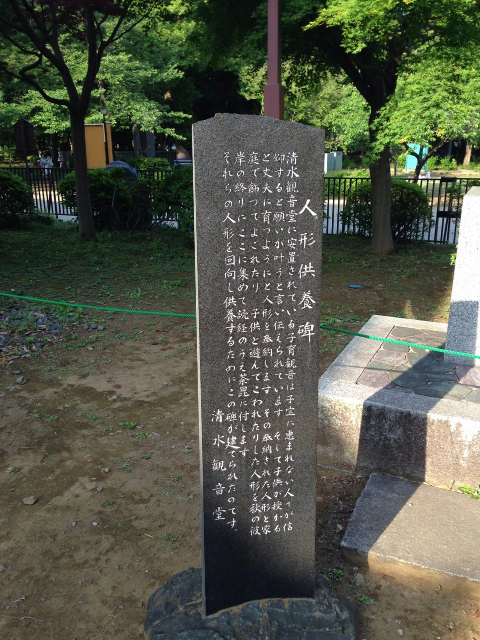 この碑を読んで、ものすごく納得してしまいました。お人形遊び…そこから 優しく接するとかお世話するとかを学んでいく訳だ。なのに忘れてる時あるな…思いやりとか、気遣いとか。と なかなか深く人生を振り返るきっかけにもなる場所です。訪れると 優しい気持ちになれます。