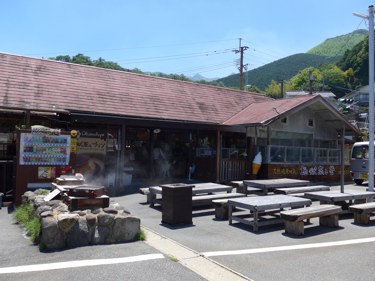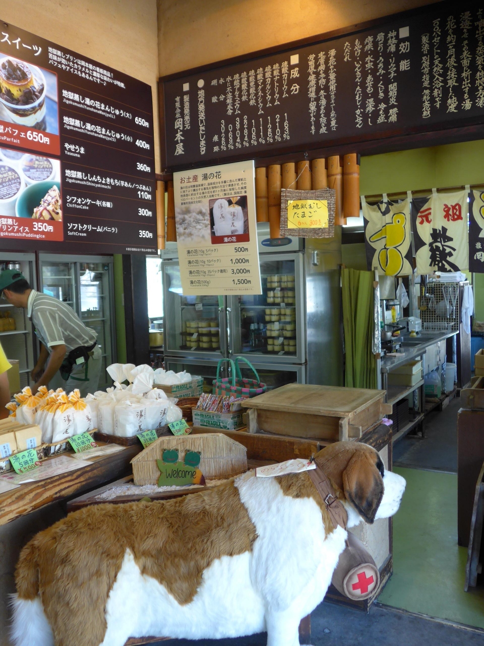 売店&食堂に行って来ました。地獄蒸し窯でも有名で蒸したての温泉ゆで卵も食しました。