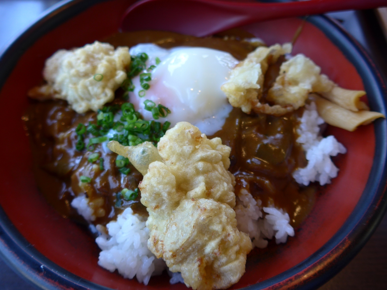 とても美味しい大分名物・とり天のカレーに温玉をトッピングし頂きました (^0^)!!