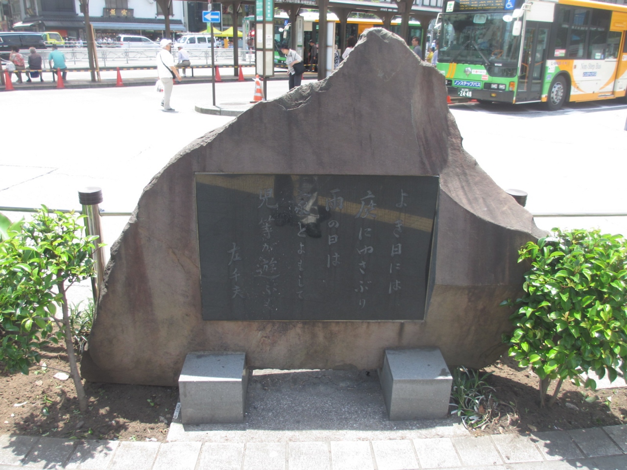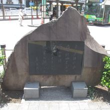 錦糸町駅南口駅前のロータリーに碑と説明板があります。場所がわからない場合は、ロータリー野駅よりにある地図を見ると載っていて、私はそれを見て見つけることができました。明治時代に活躍した歌人で小説家でもあった伊藤左千夫の牧舎と住居があったそうです。牧舎があったなんて今の姿からは想像もできませんでした。