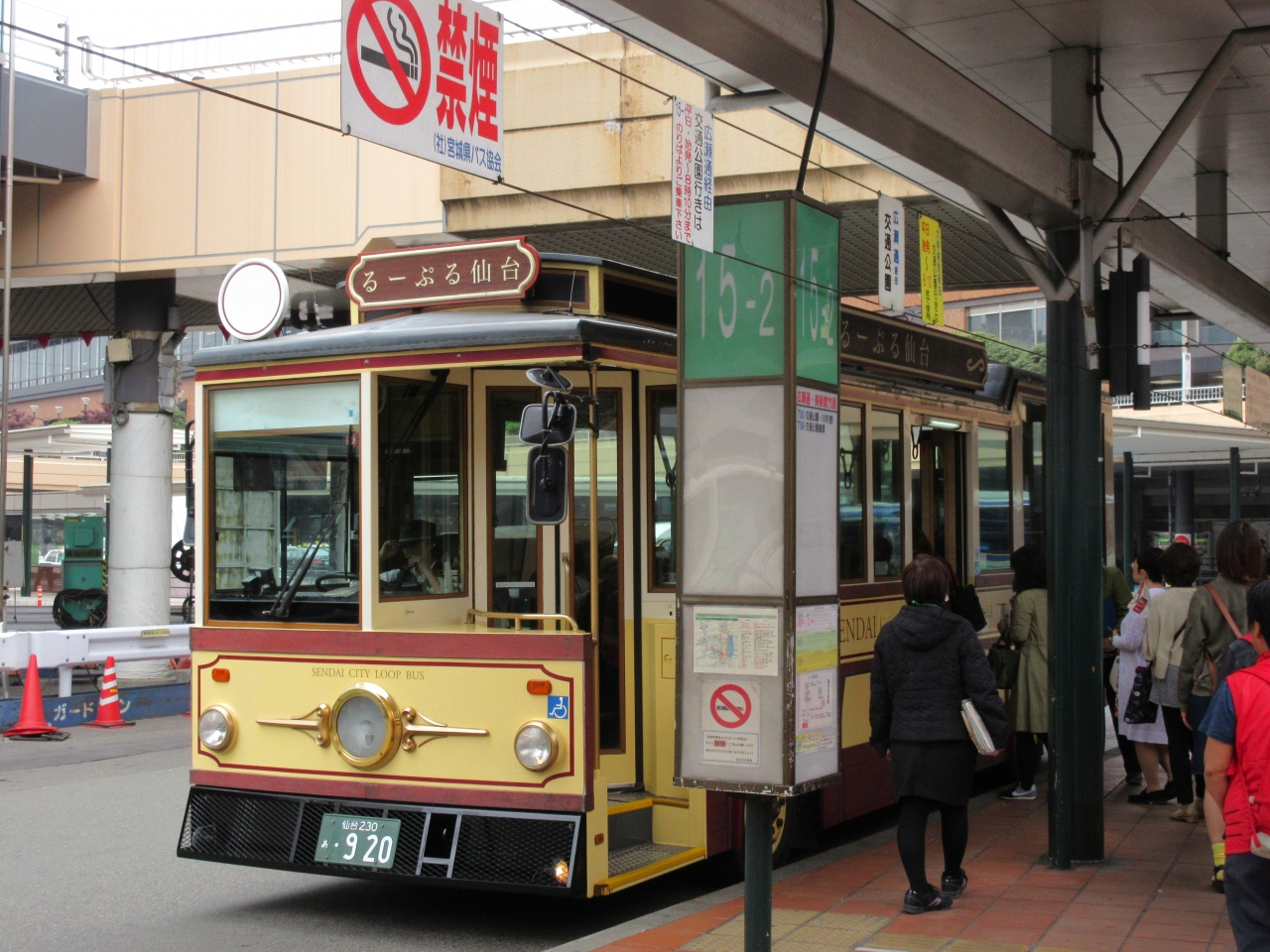 仙台城址や博物館など仙台の名所を効率よく回れる観光用のバスです。お得な一日乗車券もあり、車内では観光案内もあるなど、観光客向けに特化したバスといえます。ただし席数が少なく土日祝は激混みになるので、座りたい場合は乗車時間の前に行って並んだほうがいいです。