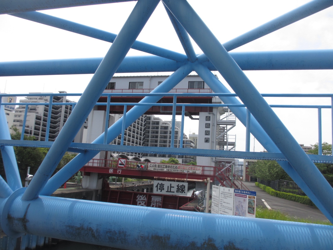 小名木川に架かる小松橋のところに門があり、説明板もありました。江東区は西側と東側で高さが違うのでこの閘門により水位差を調整して船舶の航行を可能にしています。実際に船に乗って閘門を通ってみたいと思いました。