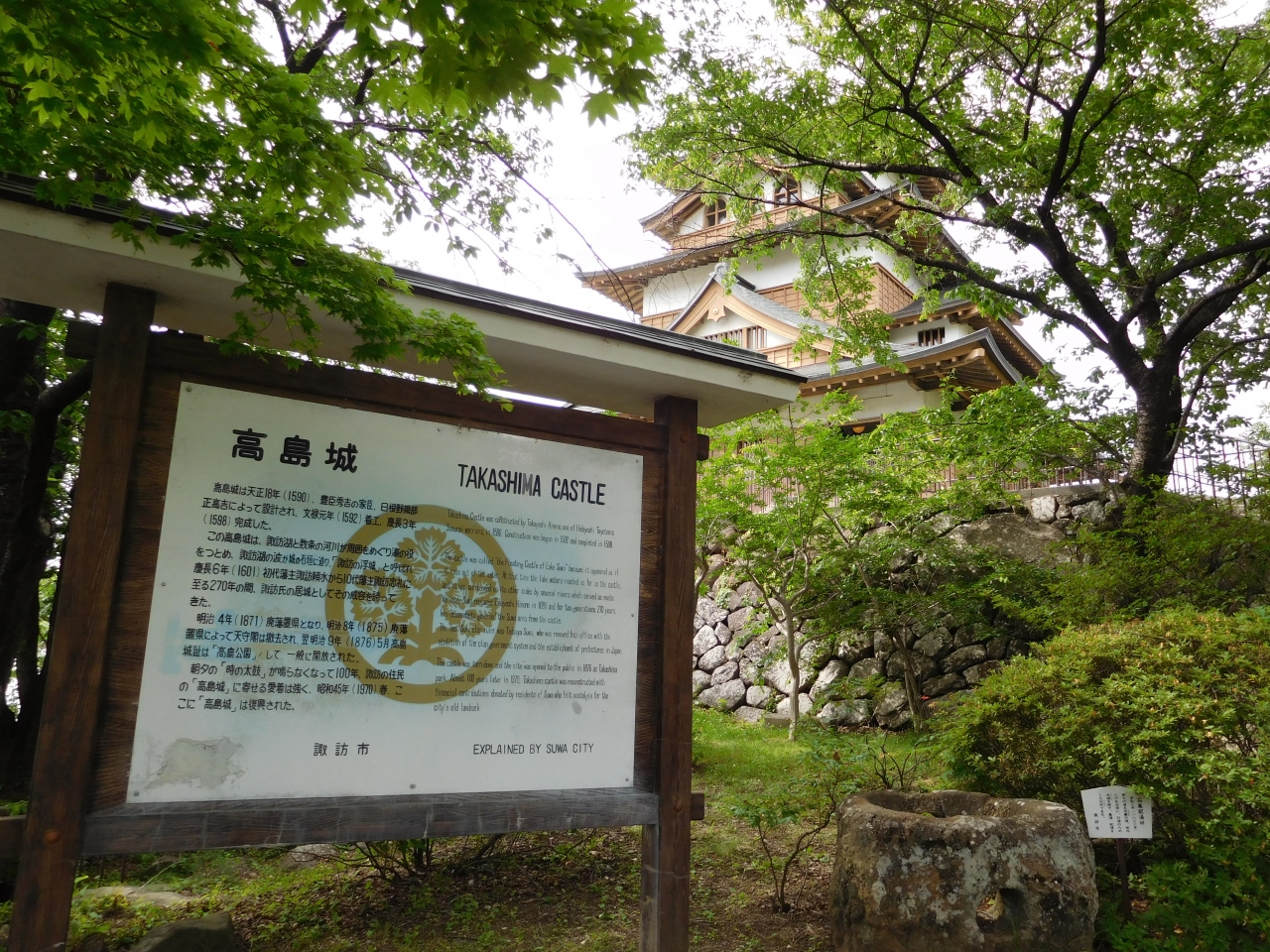 諏訪インターから車で約15分の距離にあるお城です。諏訪湖上に浮いて見えた事から、別名「諏訪の浮城」とも呼ばれた水城です。天守閣は復元されたものですが、木の板のような黄土色をした珍しい配色でした。お城の中は、ちょっと閑散とした感じで、1階の郷土資料室で流れている、諏訪のお祭りのビデオの音が賑やかに感じました。展望台は、左側と右側のみで、ぐるっと一周する事は出来ませんでした。