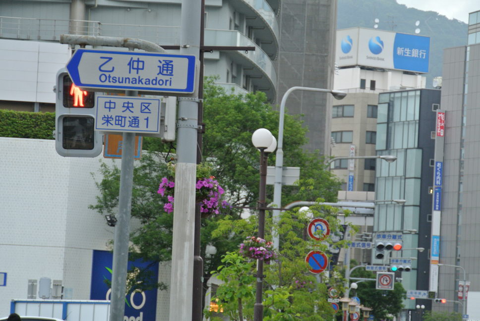海岸通りより一本(場所によっては2本)北側に入った道路で、東西に走っています。漢字を見て、「おとなか」だと思っていたのですが、「おつなか」なんですね。昔、定期船貨物の取次を行う業者を乙種仲立業=乙仲といったそうです。港町ならではの通り名なんですね。