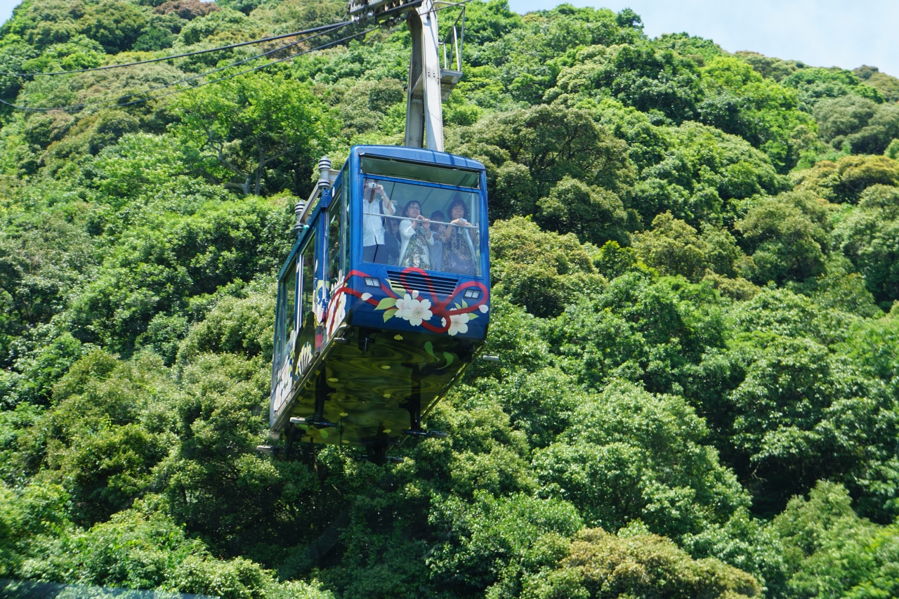 岩国城ロープウェイは、錦帯橋と岩国城のセット券があって、それを利用しました。ロープウェイ自体はさほどの規模ではありませんが、上るにしたがって、眼下に錦帯橋や錦川、岩国の市街が広がってきて、その美しさはなかなかのもの。楽しいロープウェイです。