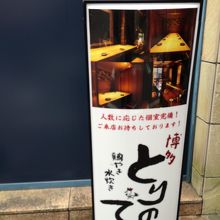 とりのてつ大名店は地下鉄赤坂駅から徒歩10分ほどのところにある居酒屋です。入口に階段があり、二階にあがります。店内はカップルシートや大小それぞれ個室があります。