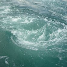 大潮の日の満潮1時間前に到着するように計画を立てて出発しました。観潮船は満員になるので早めの乗船券を買いました。出発して、渦に到着すると、すごいパワーでした。次々に渦が生まれては流れていきます。色もきれいでした。