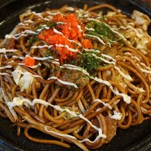 濃厚なソース味が太めの麺によくあって、かなり本格的。鉄板に載せて出されるので、最後は焦げてちょっと硬くなるような。それが好きという人にはいいのでしょうが、私はちょっと好みじゃないように思いました。
