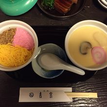 名物の茶碗蒸しは非常に大きいですがおいしいので