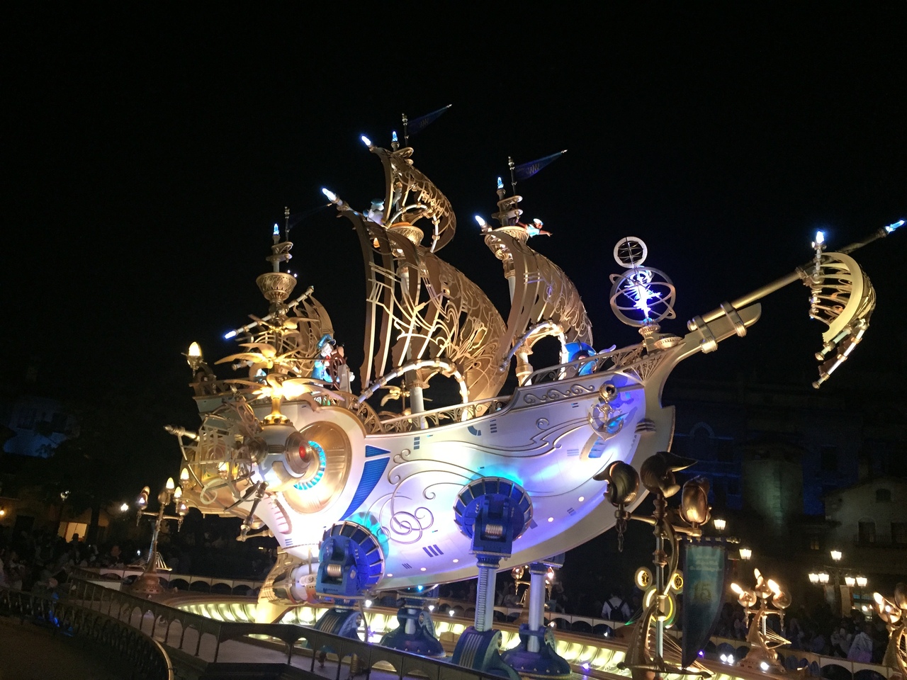 トイストーリー(子供たちは3回)→ タートルトーク → 早めの昼食(カレー)→ シンドバット → インディージョーンズ(子供たちは2回)→ アリエル → アクトピア → ショー → 電車 → 早めの夕食 → マジックランプシアター → ショー → 買い物