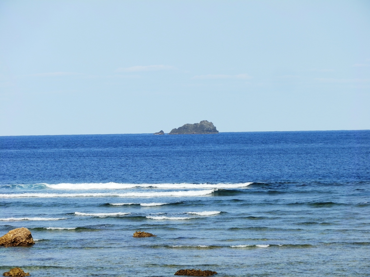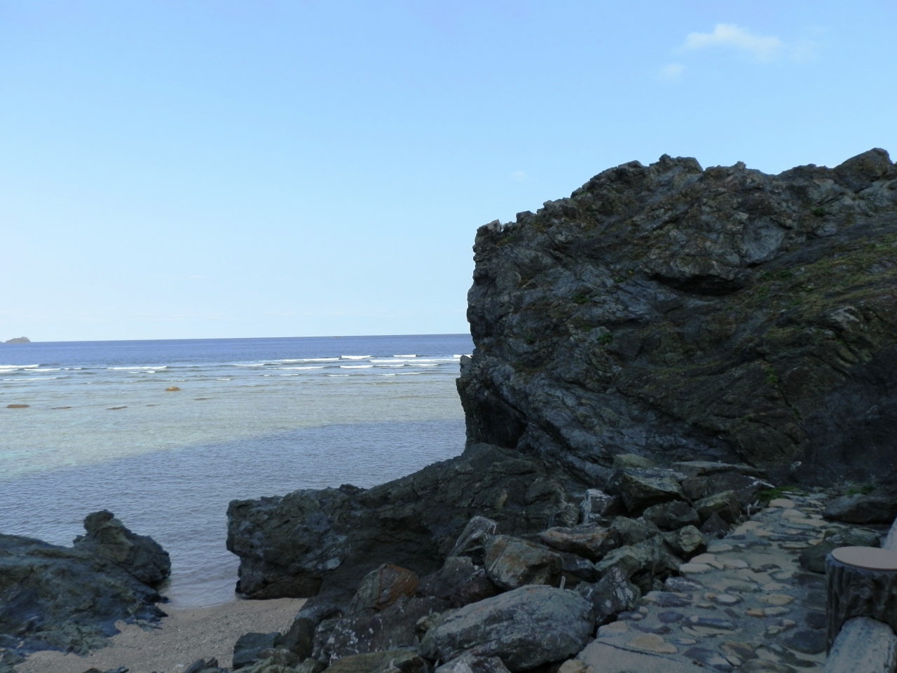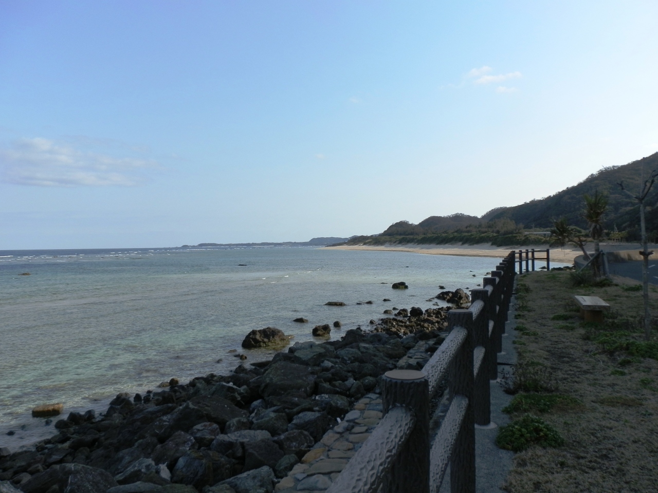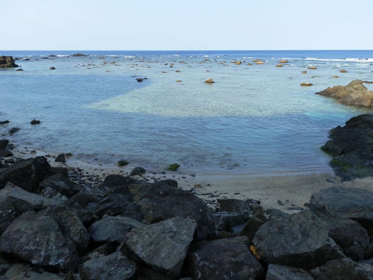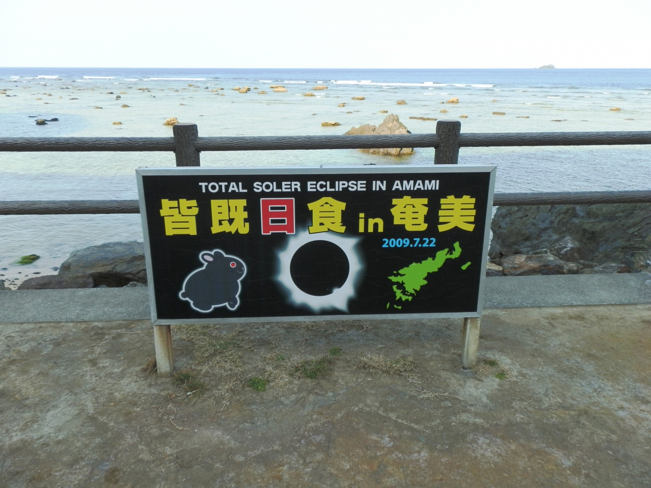 突端であるので、遮る物がなく視界がとっても広い。太平洋側には珊瑚礁広がる海岸線、細く突き出た「あやまる岬」、水平線に喜界島が見える。夕日は東シナ海側で、夏前後に海に沈む夕日を見ることができ、また満月の前には夕日と月を同時に水平線上に見ることも可能だ、とバスガイドさんが説明してくれた。