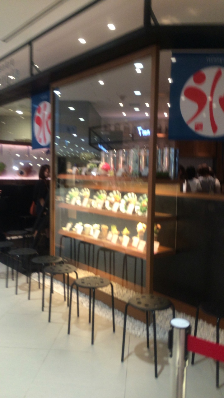 ルクアにあるカフェです。オリジナルドリンク&和スイーツが評判のいわゆる和カフェです。今では氷の看板?のれんもでていました。最近はとくにかき氷ブームなので各店アイデア勝負でしのぎを削っていますね。なんだかほっこりする空間です。
