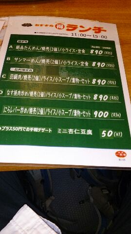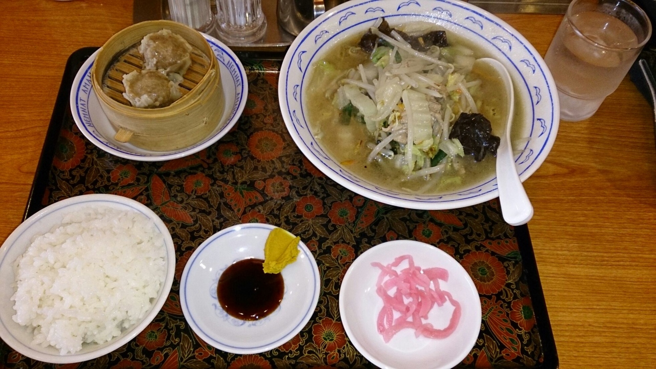 昼は数種類ランチセットがあり、タンメンセットを注文。タンメンにシュウマイ2個、ライスと漬物が付いて890円。他にサンマーメンセットや回鍋肉セット等があった。