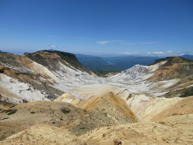 特に森林限界を越えてから到達する「牛の背」、そこから見える火口、その向こうに見える湖、牛の背から山頂までの稜線、頂上から見える飯豊山、その逆側の街の景色は素晴らしいの一言。