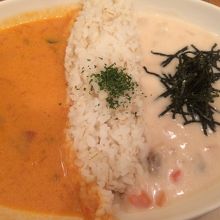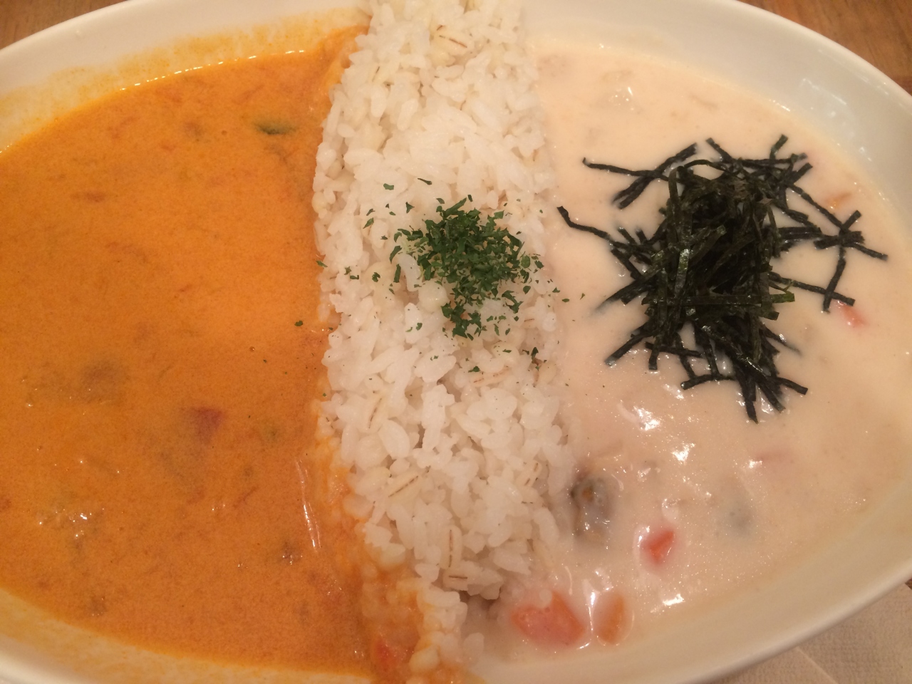 前を通りかかったので再訪しました。夕食に2種のスープにごはんがついたセットをオーダー。トマトクリームとクラムチャウダーにしました。クラムチャウダーが美味しくて気に入りました。ごはんとも相性バツグンです。