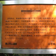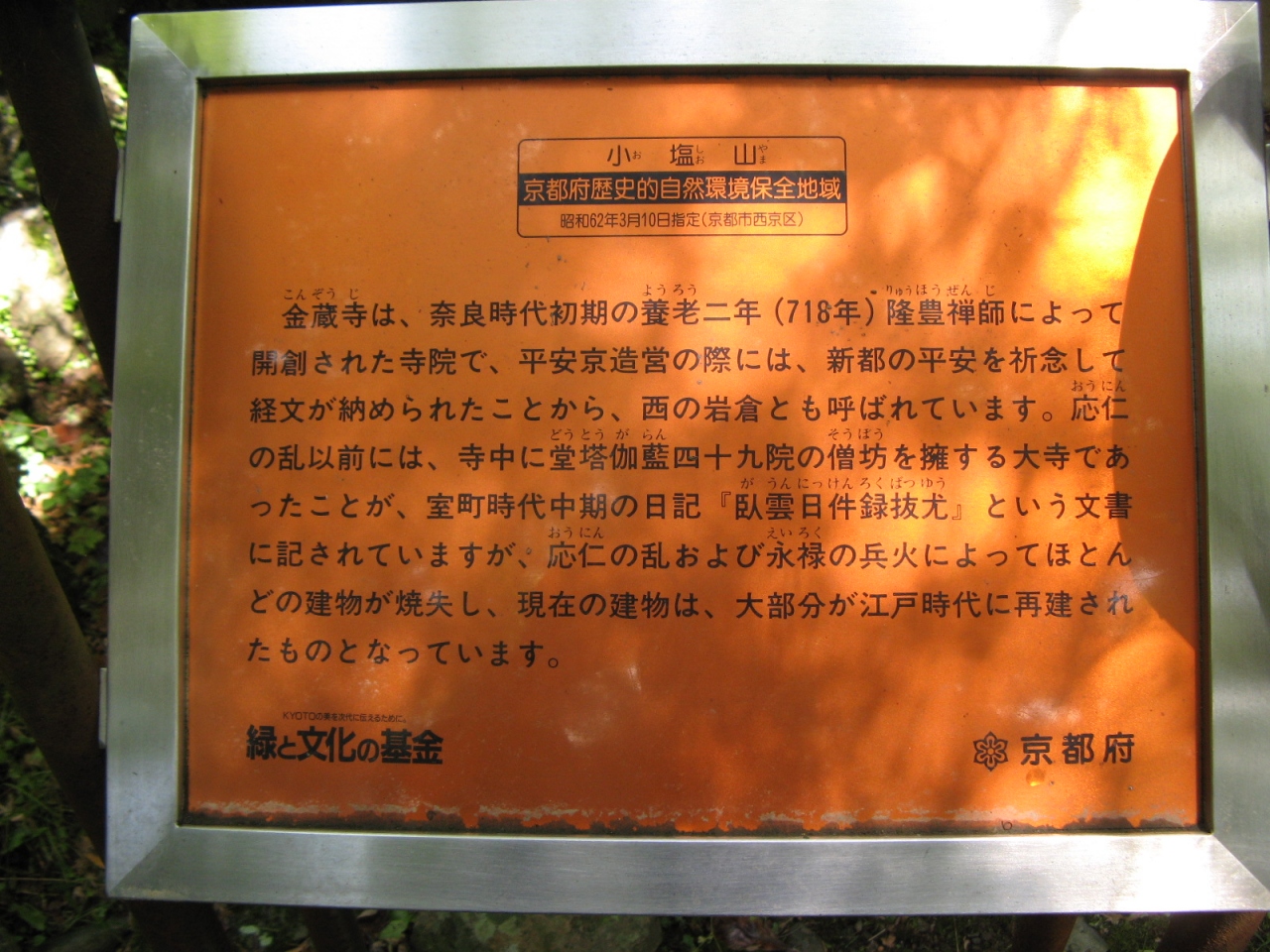 現地にある説明板によると、応仁の乱により建物は焼失したそうで、現在の建物は大部分が江戸時代に再建されたものとか。山の中腹にある分、境内からの京都方面の眺めはたいへんよかったです。参道や境内にはモミジの木が多く、紅葉時期は大変綺麗だろうと思いました。