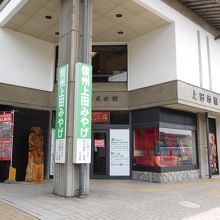 上田城跡公園から、信号を渡った道路の向かい側にあります。1階は、お土産品がいろいろと並んでいました。2階には、観光案内所があり、無料の休憩スペースや、真田三代の甲冑と記念撮影出来るコーナーもありました。観光情報収集をしたり、ちょっとした休憩にちょうどよい所です。