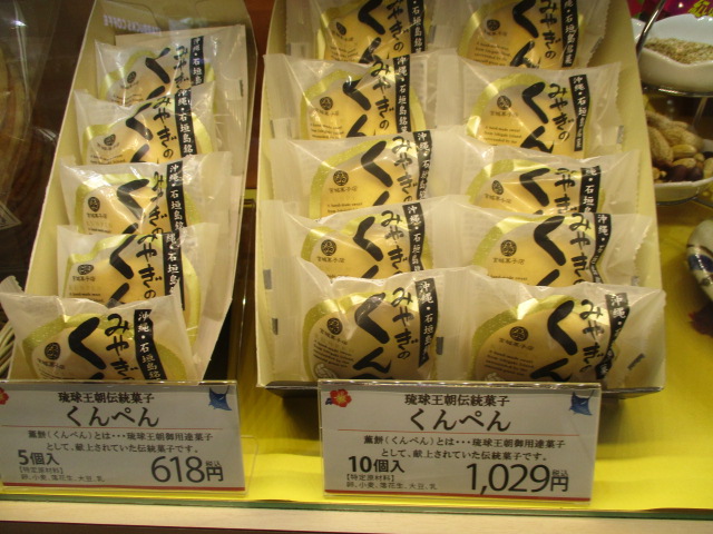 「石垣の塩ちんすこう」や「くんぺん」や「塩クッキー」のお店です。石垣島の宮城菓子店の直営店が空港内にあります。「くんぺん」はゴマとピーナッツ餡の和菓子で好き好きがありますが、塩ちんすこうは、普通のちんすこうより美味しいと思います。