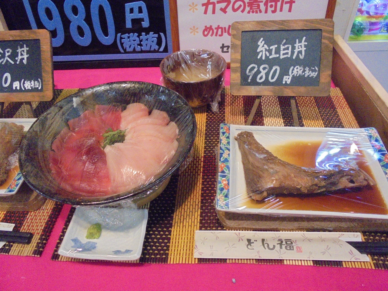 清水駅から近い河岸の市のまぐろ館にある海鮮どんぶり屋さんです。赤身とびんとろ丼がおいしそうだったので「紅白丼」と桜エビとしらすが入った「駿河丼」を注文。生のしらすが取れる季節で、甘くコリコリした食感のしらすが味わえました。値段も安く、最高でした。